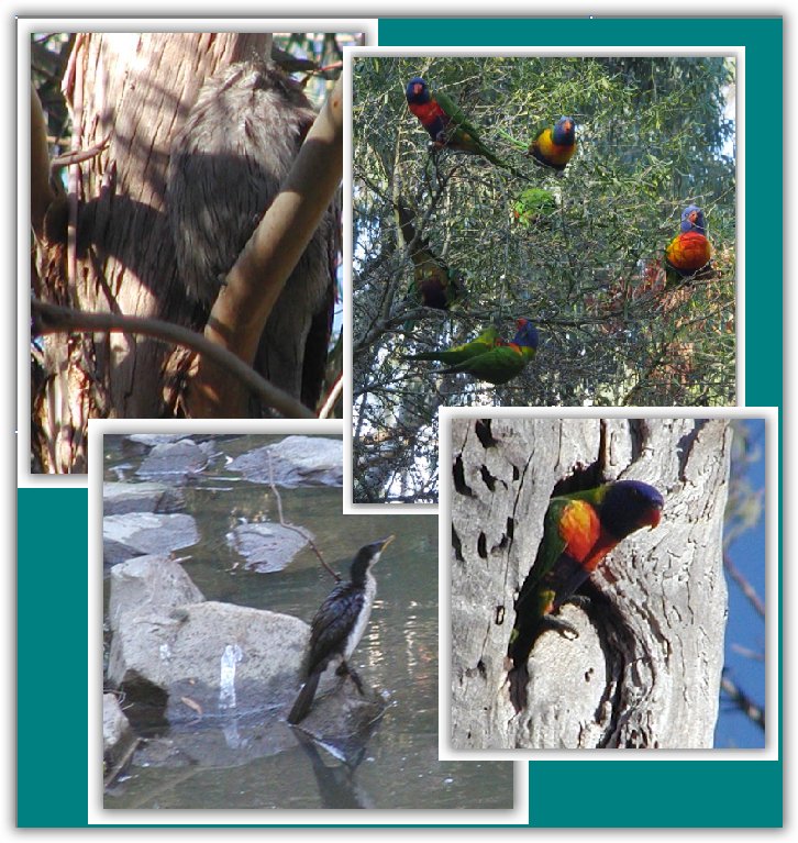 They show a well disguised Tawny Frogmouth, Rainbow Lorikeets and a Little Pied Cormorant.