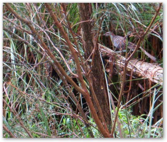 - Buff-banded Rail in the Wetlands area – its reddish colouring blending so well with the colours of the wet branches :
