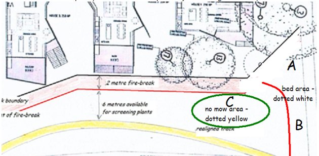 Note that the sketch map shows the proposed development next door at 60 Main Street which goes to VCAT in September – highlighting the need for planting to try to screen out whatever housing eventually ensues there.