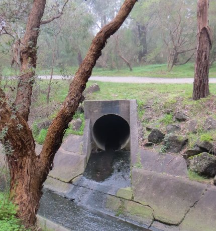 - Stormwater is water that runs off surfaces such as rooftops, driveways, roads and footpaths. It travels down pipes and gutters into pits and then enters the underground stormwater network. In our area, the latter is piped to Gardiners Creek – you’ve probably seen pipes like the above feeding the creek. Bottom line: anything that goes into the gutter, quite likely ends up in the creek (or, a last line of defence like The Billabong).