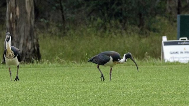 - Ruth’s photo shows a pair of Straw-necked Ibis on Kalang Oval. The reason for their name is very obvious on the bird to the left!