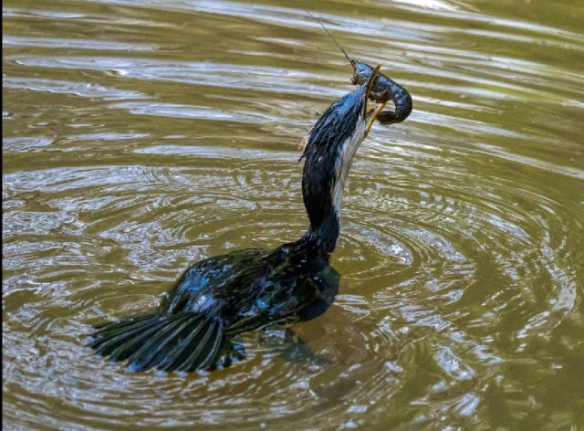 This Little Pied Cormorant had a feast from 30 minutes hunting in the pond. I saw it catch 4 fish, a yabbie and a frog (note the frog got away minus a leg!).