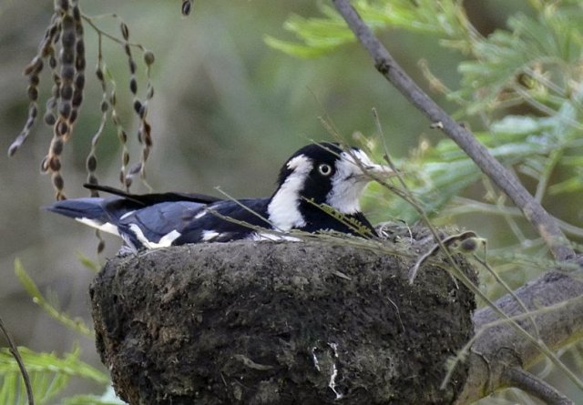 - They’re not the tidiest of nests are they? Nevertheless, they seem to do the trick… For contrast, Ruth’s photo (below) taken late November of a female Mudlark in Kalang Park seems to show a much tidier and more solid construction (mostly of mud – what else?):