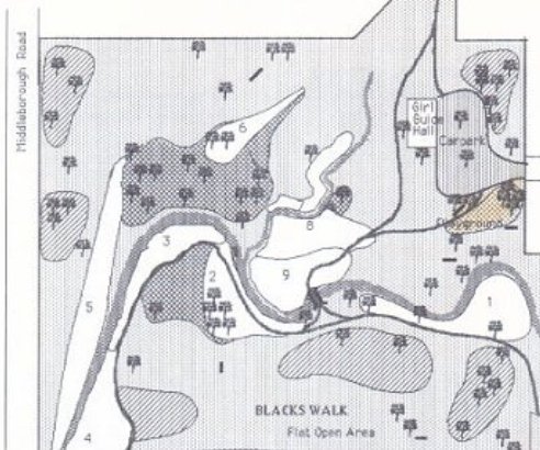 - Although a little difficult to see in the full map above, the map shows 20 different numbered planting areas in the park – one of our earliest regeneration efforts after the park opened up. The snapshot below shows the numbered plots more clearly: