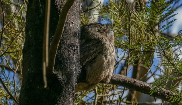 Tawny Frogmouth Basking in the sun
