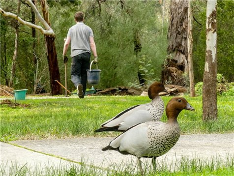 - Interestingly, the ladies far outnumbered the men on the day – Sean was the only gentleman present! We do know some of our committee men were excused due to being away in warmer climes. Luckily, some of the local wood ducks were able to join in and lend a hand… (or were they just winging it?).