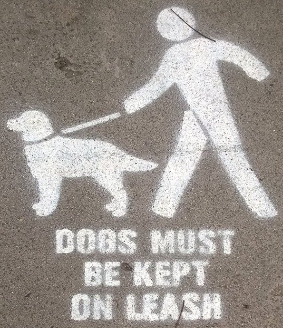 - Council has stencilled signs on paths near park entrances to remind dog owners that all of the Creeklands parks are designated “on-leash” for dogs.