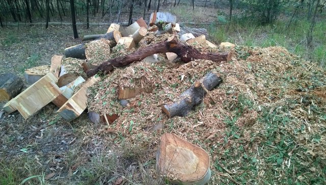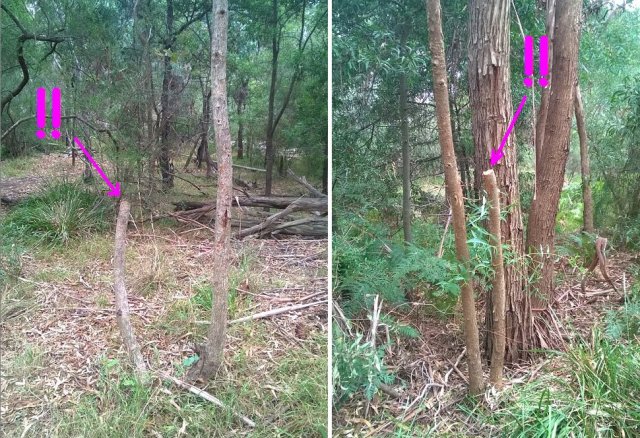 - A couple of young Eucalypts had been recently sawn down at about a meter’s height, then the top taken off and discarded – apparently to take a piece out of the middle.