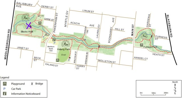 - For our next community working bee on Sunday, August 4th, the site will again be in Blacks Walk – meeting at the bridge and working westwards towards Middleborough Road with a combination of weeding and planting.