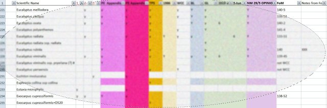 - Nicky has gathered information from many sources including our Master Plan and supporting studies, the authoritative Flora of Melbourne, the Blackburn and District Tree Preservation Society lists, stock lists from our nurseries and so on into one place. She has been able to pinpoint some strange anomalies in the lists and challenge some of our thinking. The aim is to create a core list of plants to form the basis of our annual orders on the nurseries – as well as subsidiary lists for specific purposes/sites which might vary with our planned projects.