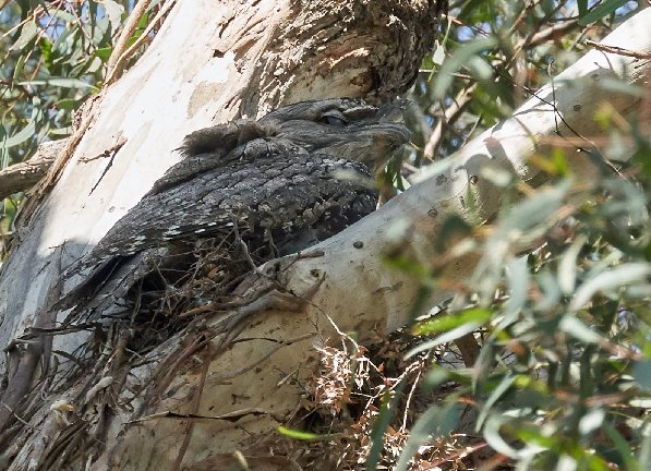 - The good news is that the Tawnies returned to the same nest site this Spring and once again reproduced successfully. On Thursday 21st November, Tawny Dad was sitting on his nest, high up in a Yellow Box in Rob’s back yard (is that a little eye peeking out from under Dad’s wing?):