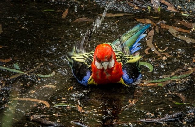 Eastern Rosella: Bath time in the Barrelled part of the Creek