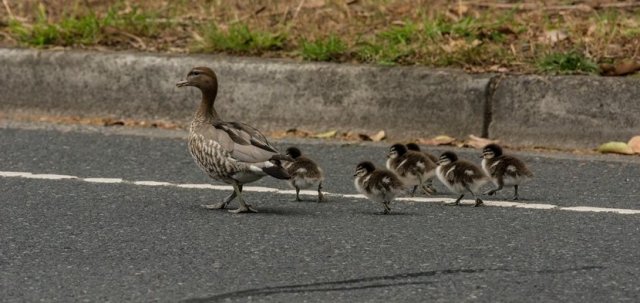 Wood Duck and Ducklings on Blackburn Road – not the safest part of our Corridor for a stroll