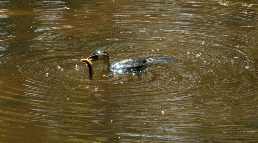 Little Pied Cormorant – successful fishing in the Laurel Grove pond
