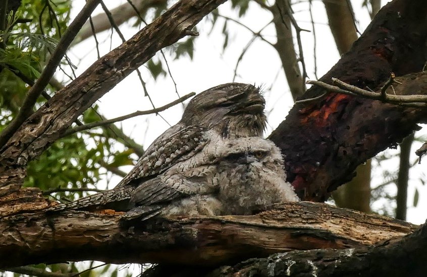 - In November last year, we brought you a story of a Tawny Frogmouth family nesting next door to the park. One of our friends, Rob, had a great viewing spot on his back verandah and provided some shots using a telephoto lens which showed how quickly the chicks grow, fledge and then leave home.