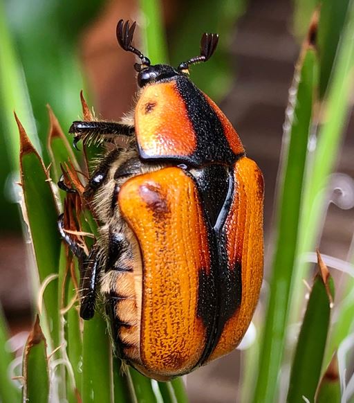 - Friend Lisa sent us her photo, taken on her iPhone(!), of a Cowboy Beetle (Chondropyga dorsalis) in her garden: