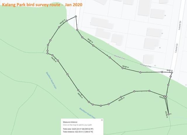- These are 45 minute surveys (to Birdlife Australia technical criteria) – to be conducted weekly at first (to create a baseline) and then at a lower frequency later. This work is in addition to our regular Autumn and Spring bird surveys.