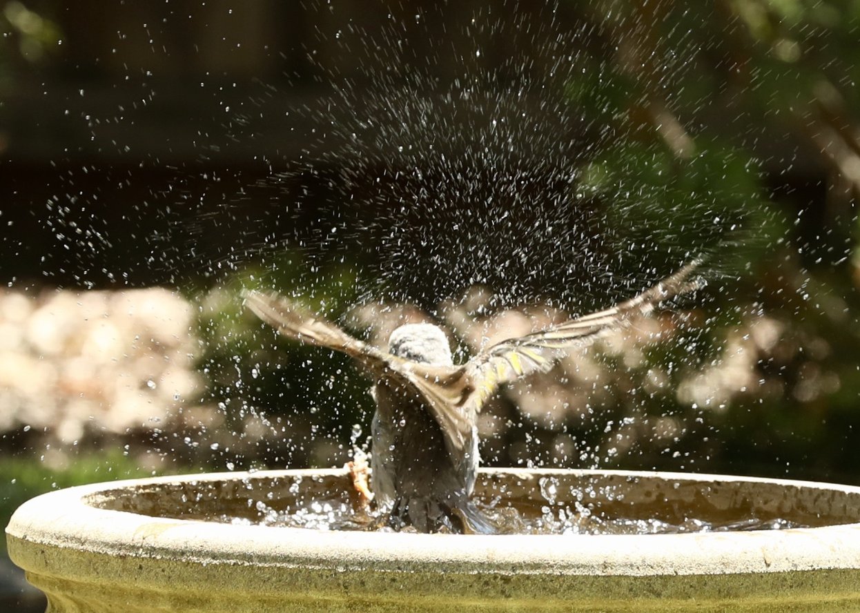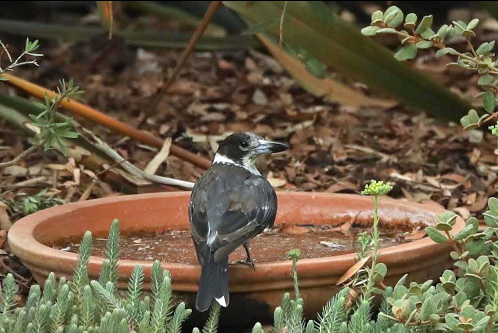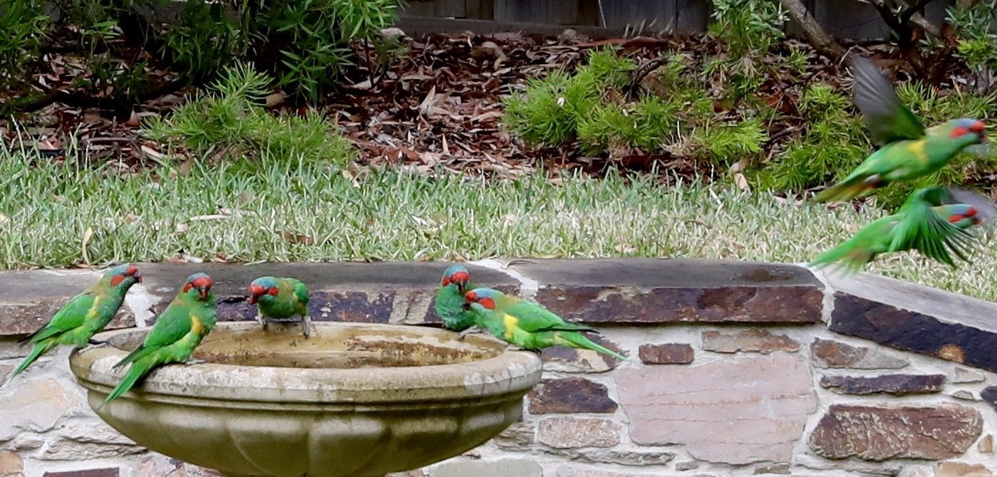- Friend Hugh, who lives next door to Kalang Park (though not so close to the creek), has sent us some photos illustrating just how popular his birdbath is in this warmer weather: