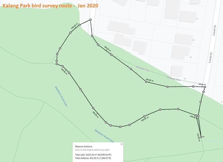 - These are 45 minute surveys (to Birdlife Australia technical criteria) – to be conducted weekly at first (to create a baseline) and then at a lower frequency later. This work is in addition to our regular Autumn and Spring bird surveys.