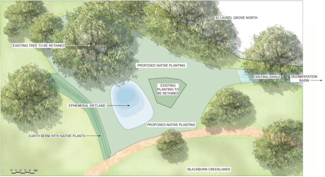 - Council is proposing to construct an ephemeral (seasonally wet) wetland and sedimentation basin in Blackburn Creeklands between Waratah Crescent and Laurel Grove North.