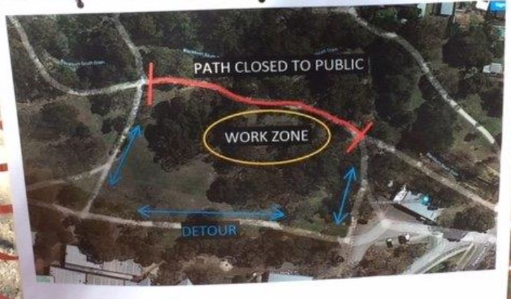 - The work zone is to the west of the Scout Hall – between the Scout Hall and the bridge and will involve heavy equipment and several vehicles.