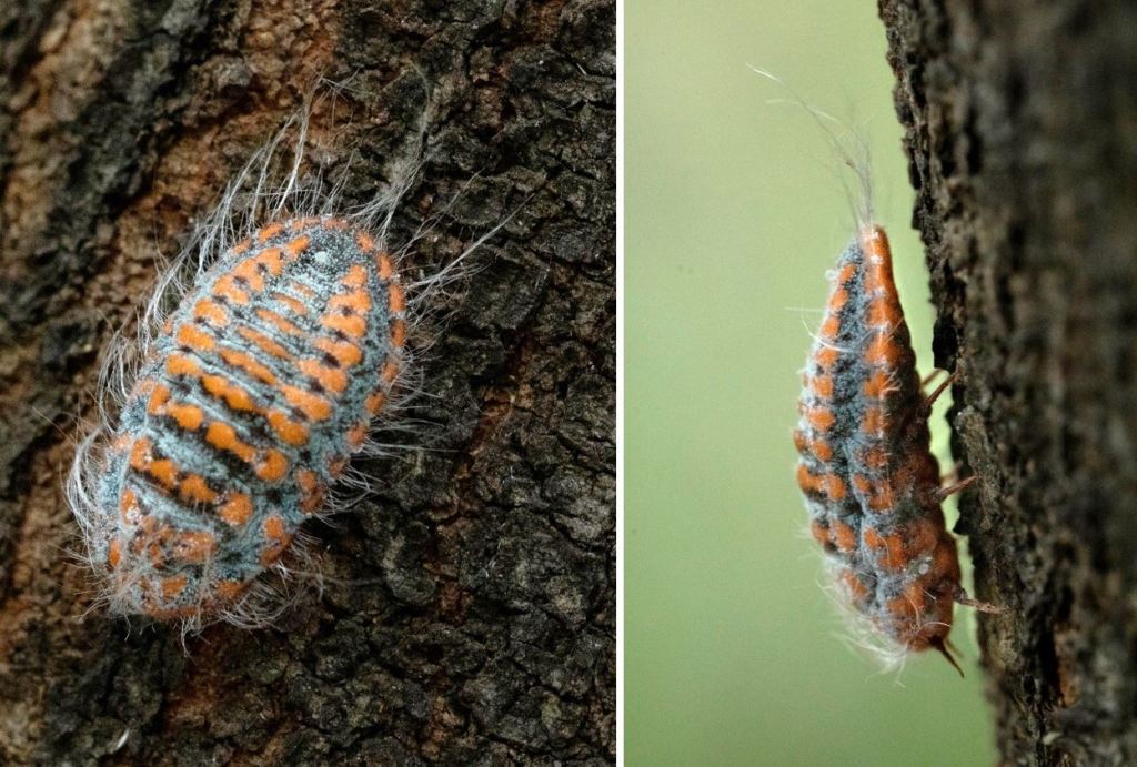 The most amazing creatures are camouflaged on the bark of Gum Trees. You can see the bug more easily when it moved onto darker bark. This creature is a bug called Ledromorpha planirostris and is the juvenile form of the world’s largest Leaf Hopper.