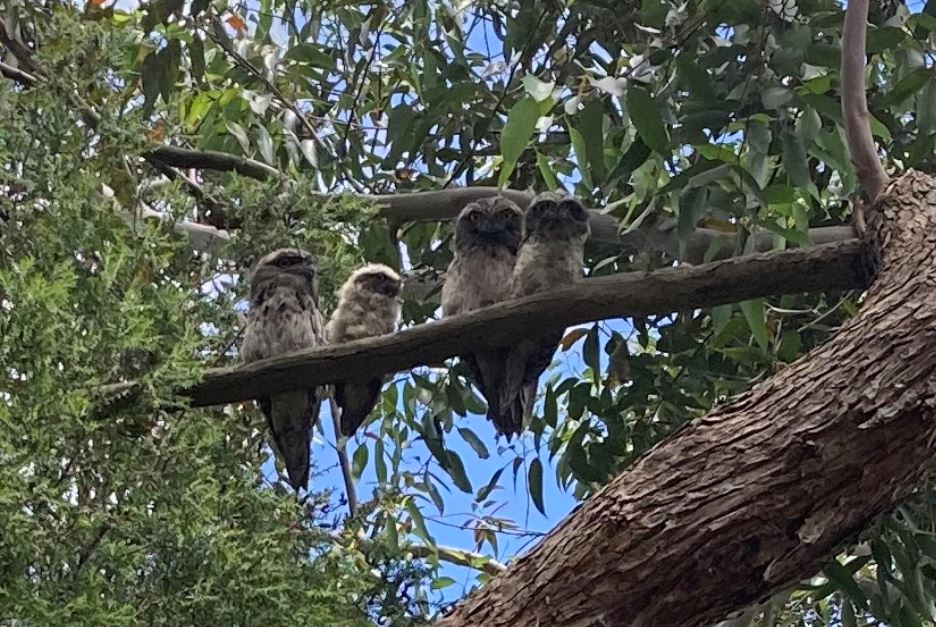 Neighbours of the park have sent in some photos of Tawny Frogmouth family groups (quite possibly the same group):