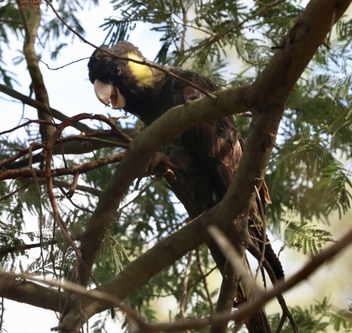 One of our favourite visitors, the Yellow-tailed Black-cockatoo, has been sighted again the park over the lest few weeks. Hugh sent us these photos showing one tucking into grubs they find under tree bark.