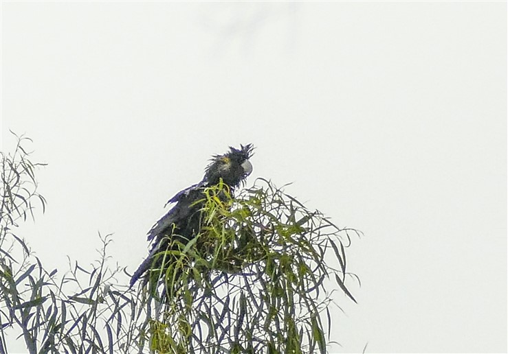 2 Brown Goshawks provided a great finale over Blacks Walk. The raptor alarm response of the nearby birds sounded the alert for the presence of the Brown Goshawk hunting pair as their hunting behaviour, in survey parlance, “put all birds up… chased by 2 Ravens”. Brown Goshawks prey on smaller birds and flush them out of the habitat trees by flying lower through the tree canopies. Their potential prey, the numerous Rainbow Lorikeets flew up and around noisily as they dispersed, the Noisy Miners were noisy, as were the Magpies. The bird up higher flying near the Brown Goshawk was identified as a Little Raven and was thought to be probably chasing the Brown Goshawk. One Brown Goshawk disappeared from sight over the primary school and the other caught a thermal air current and circled gaining altitude for a few minutes. It went up so high so as to become a tiny T shape against the white clouds before heading west gliding in air currents along the Gardiners Creek valley…