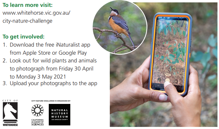 Further free on-line training (6:30-7:45pm, Tuesday 20th April) in the iNaturalist app is available. You can book here. For more information on the global City Nature Challenge, please visit: www.citynaturechallenge.org