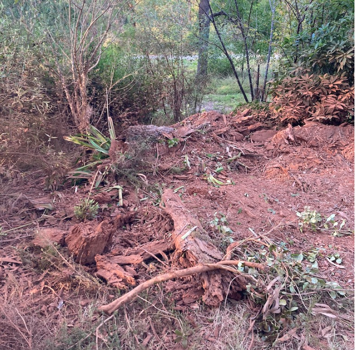 The land at 60 Main Street was recently sold. There are existing approved plans for three two-storey units on the site. Sadly, the remaining stump of the tree was knocked over and shattered in a rough clean up of the site immediately before the property’s auction. Apparently, it was a genuine mistake by the tree fellers who were operating on the basis of an unapproved landscape plan and may have confused tree numbers to boot. Council’s planning compliance officers are aware of the situation.