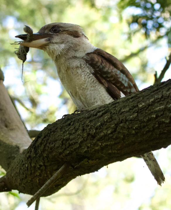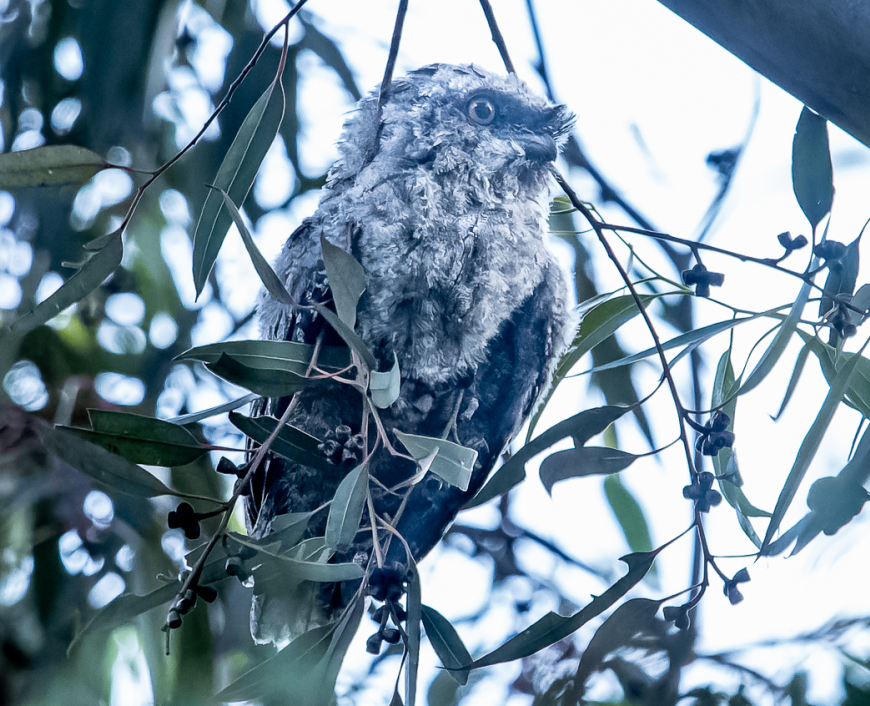 On Thursday, November 18, after nearly two weeks on the same branch, the tree was found bird-less, much to the disappointment of some of the regular human visitors. A local resident spotted the family a bit further into the bush, hidden from most prying eyes. Worryingly, what was probably the chick’s first attempt of flight had led it to a log only one metre above ground, again raising concerns amongst the humans for its wellbeing. The frogmouth family then moved further into the bushland, where the adults were observed still feeding and watching over their fledgling on the monthly Blackburn Creeklands bird survey on Wednesday, November 24 – thankfully much higher above ground by now.