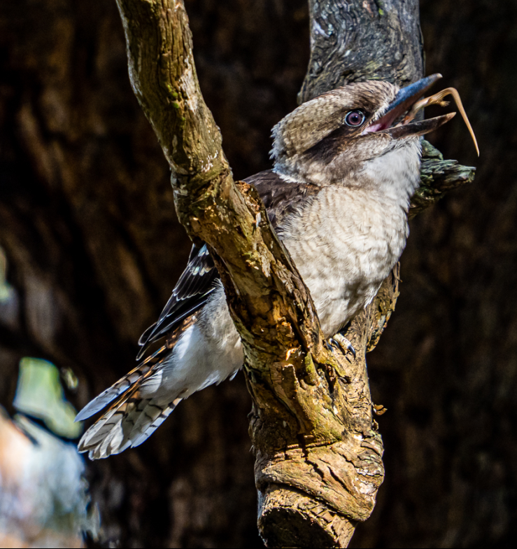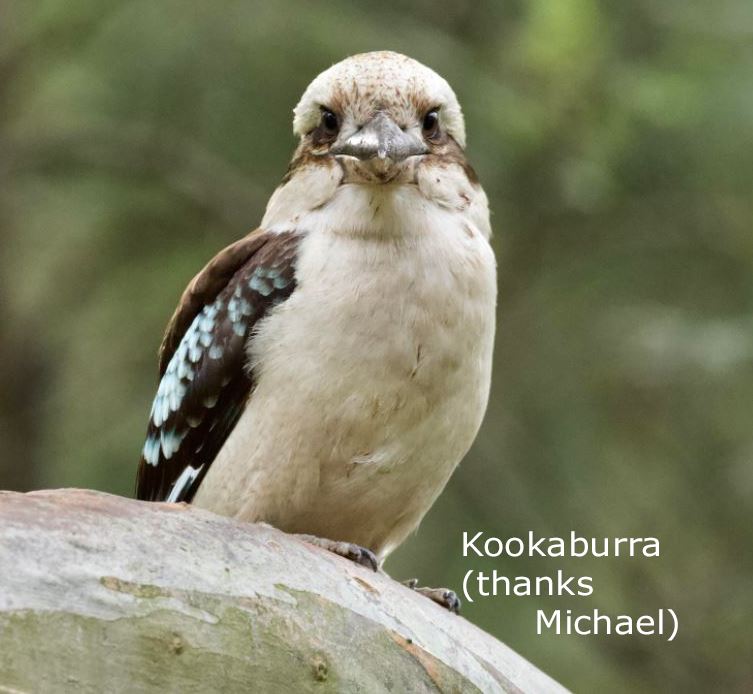 Here’s a movie of Kookaburras queuing up to feed nestlings. The lucky young ones were being fed, not only by their parents, but also by a young Kookaburra from last years clutch – helping (and learning?):