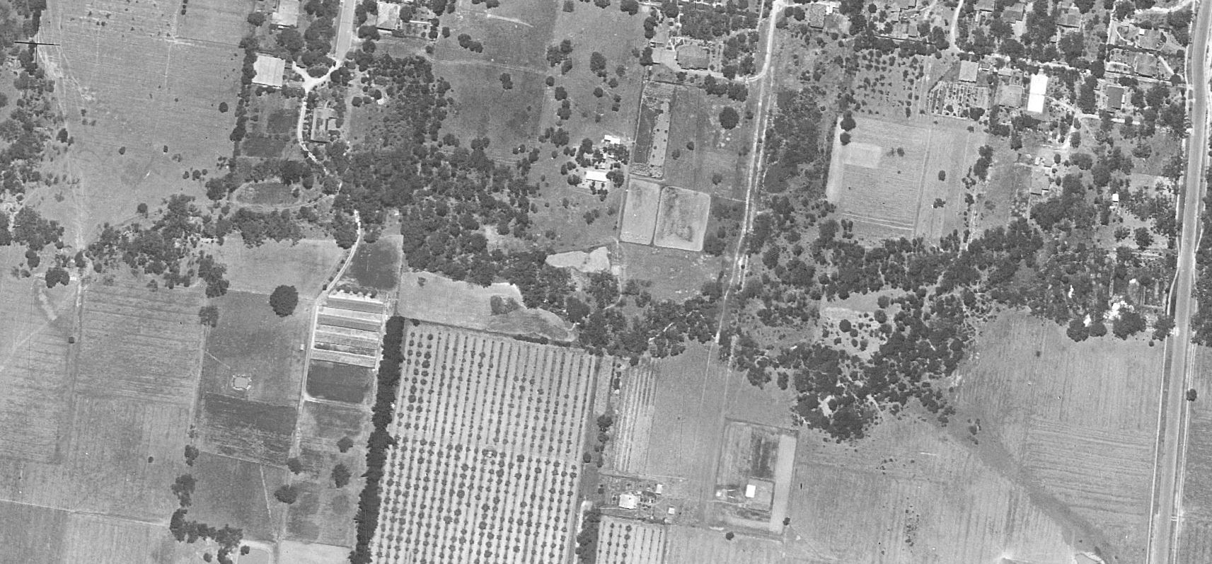 - In 1945, the areas to the south of Linum Street including today’s Creeklands were mostly devoted to agriculture while the area to the north had already been subdivided for housing. Trees follow the creek as it wends its way between the orchards and pasture areas. The creek seems to fork to the west of Main Street. Fittingly, Main Street is the only made road. Laurel Grove North didn’t go much further south than the first house excepting as tracks. Myrtle Grove finished at the Dwyer’s house while a track continued over the creek to their poultry farm. There’s no sign of Pakenham Street, Malcolm Street, Sheehans Road or Boongarry Avenue. Part of Acacia Avenue is a farmers’ track. The first leg of Hill Street seems as significant as Linum Street.