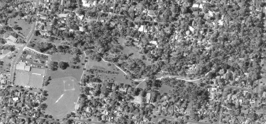 - By 1951, housing was beginning to surround the park in the post-war housing boom – at first, along Haydn Street and coming down the hill from the north. Remnant agricultural land is still evident – especially to the south of the creek. The west remained mostly untouched.
