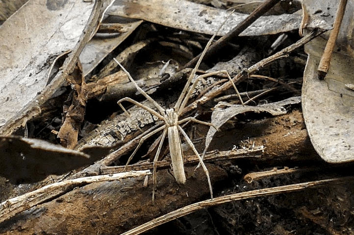 One of our weeders disturbed a female net casting spider Deinopis sp. The spider hunts at night and hides during the day. Here is an example of a net in place – taken recently at Blackburn Lake Sanctuary: