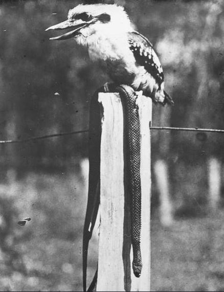 For their part, the Kookaburras claim they are protecting us from snakes as per this iconic image from the past. We read somewhere that they were introduced into the southern part of WA in 1897 because of their liking for snakes – which neatly complemented the locals’ dislike for them.
