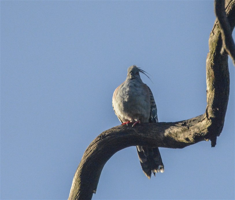 There are many indigenous species of Columbiformes (Pigeons and Doves). We see 2 of nearly 30 in our park: the Common Bronzewing and the Crested Pigeon – the latter seen in our Bird Survey photos. This bird is not one of them: