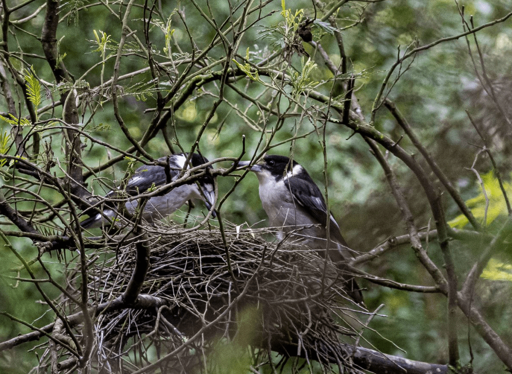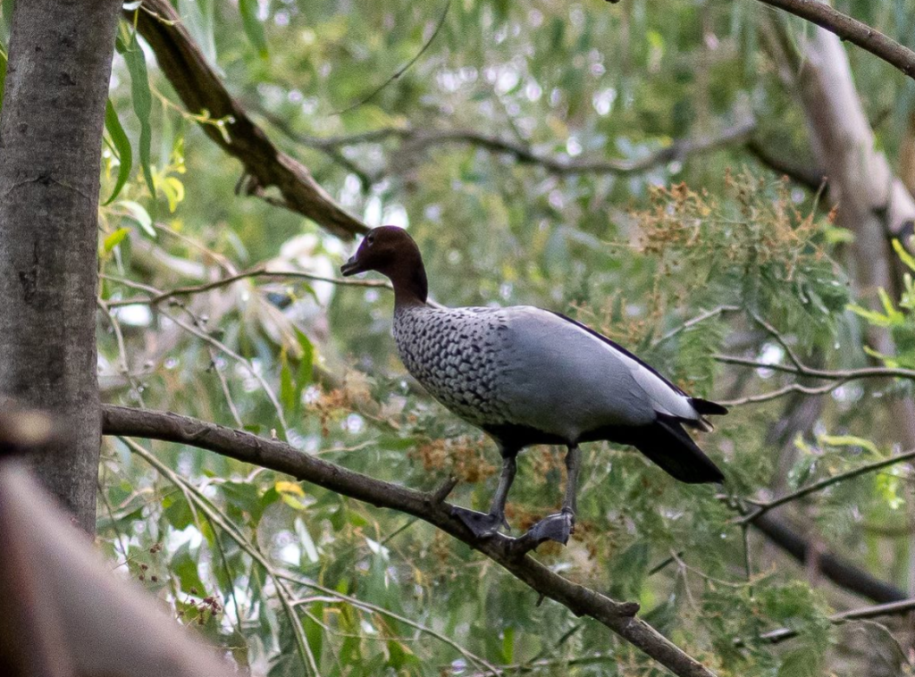 Quite a busy morning!! The Noisy Miners were harassing again, and feeding young, and sitting on nests …. The Rainbow Lorikeets were everywhere in and out of hollows, the feral bees were buzzing in and out around the feral beehives in tree hollows. A Pied Currawong was lurking to possibly feed young on their own newly built nest, possum dreys were seen . The Grey Butcherbirds are nesting too in several places. A Grey Butcherbird was seen harassing the Eastern Rosella pair, pursuing one of the Eastern Rosellas the length of the cricket oval and back. The Eastern Rosellas later returned to the area and were investigating some tree hollows. The only Spotted Pardalote seen and heard was being harassed and pursued relentlessly by a Noisy Miner. A pair of Long-billed Corella were checking hollows in the Manna gum possibly for nesting hollow prospects or for drinking water – they were too high up to see clearly what was going on there. And yes, a pair of Wood Duck flew in , several pairs of Pacific Black Duck were seen – one lot wading through the wet grass feeding . The group doing the East Section Survey reported seeing a very newly made Mudlark’s nest. They also reported seeing 4 Gang Gang Cockatoos being harassed by Noisy Miners while the Gang Gang Cockatoos were feeding in the gum leaves …