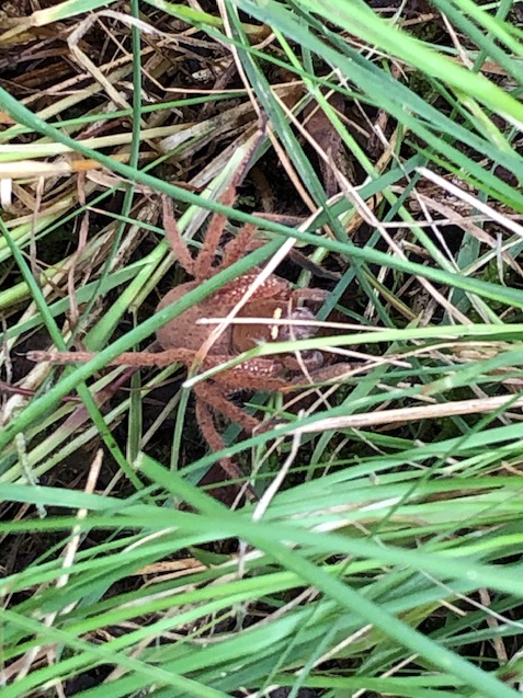 Our weeding team sent us these photos of a new “friend” encountered in the “no mow” area in Furness Park. The spider’s colouring is a good match for the surrounding leaf and bark litter – and seems to have interesting headlamps as well!