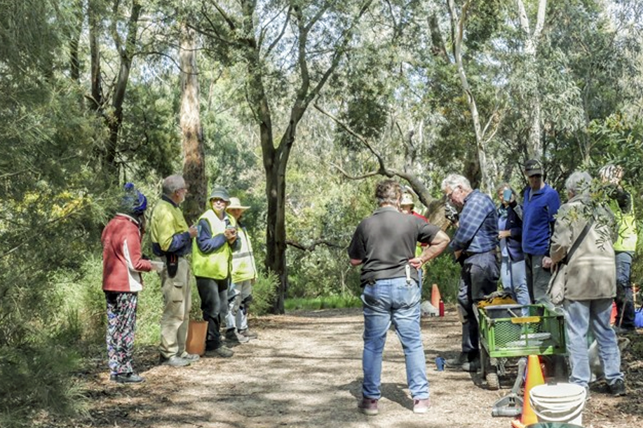 Despite concerns that the super-long weekend and school holidays would lead to poor attendance, there were 17 participants for our last Community Working Bee for the year on 25/9. This was considered a good number in the circumstances and included some very welcome new faces. Unusually, all participants were adults. The working bee was run as a National Tree Day event so participants were better covered by insurance.