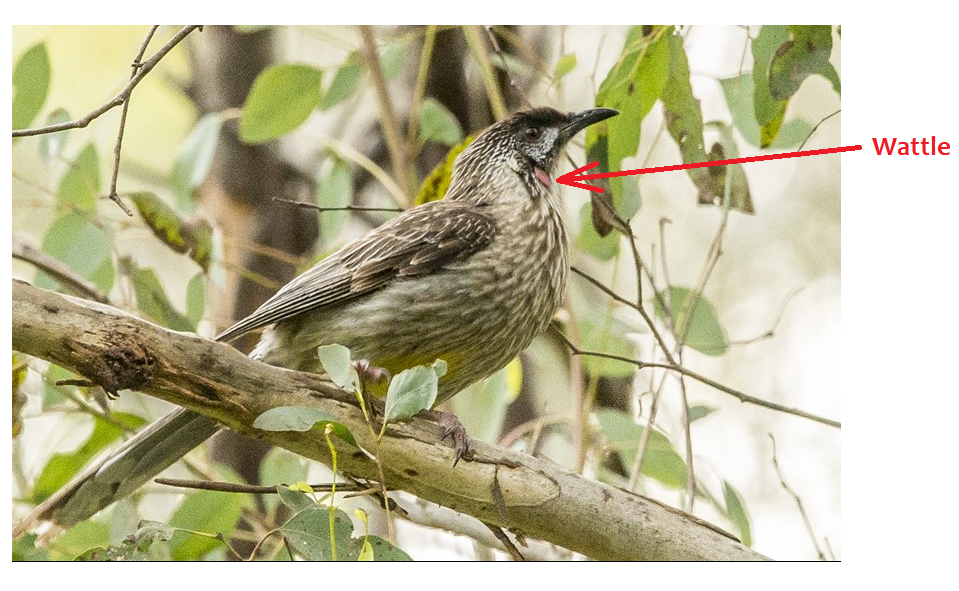 Our species is sometimes hard to spot due to its muted colours – except that their loud YAK-YAK-YAK and other throaty calls give them away. Interestingly, there is indeed a Yellow Wattlebird found in Tasmania – a little large than our medium-sized red version – it has long orange/yellow wattles and happens to be Australia’s largest honeyeater.