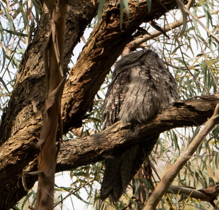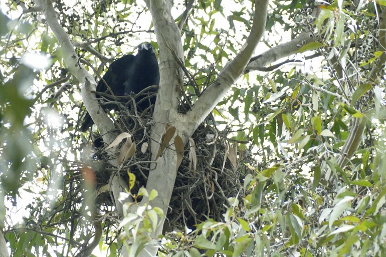 Quite a busy morning!! The Noisy Miners were harassing again, and feeding young, and sitting on nests …. The Rainbow Lorikeets were everywhere in and out of hollows, the feral bees were buzzing in and out around the feral beehives in tree hollows. A Pied Currawong was lurking to possibly feed young on their own newly built nest, possum dreys were seen . The Grey Butcherbirds are nesting too in several places. A Grey Butcherbird was seen harassing the Eastern Rosella pair, pursuing one of the Eastern Rosellas the length of the cricket oval and back. The Eastern Rosellas later returned to the area and were investigating some tree hollows. The only Spotted Pardalote seen and heard was being harassed and pursued relentlessly by a Noisy Miner. A pair of Long-billed Corella were checking hollows in the Manna gum possibly for nesting hollow prospects or for drinking water – they were too high up to see clearly what was going on there. And yes, a pair of Wood Duck flew in , several pairs of Pacific Black Duck were seen – one lot wading through the wet grass feeding . The group doing the East Section Survey reported seeing a very newly made Mudlark’s nest. They also reported seeing 4 Gang Gang Cockatoos being harassed by Noisy Miners while the Gang Gang Cockatoos were feeding in the gum leaves …