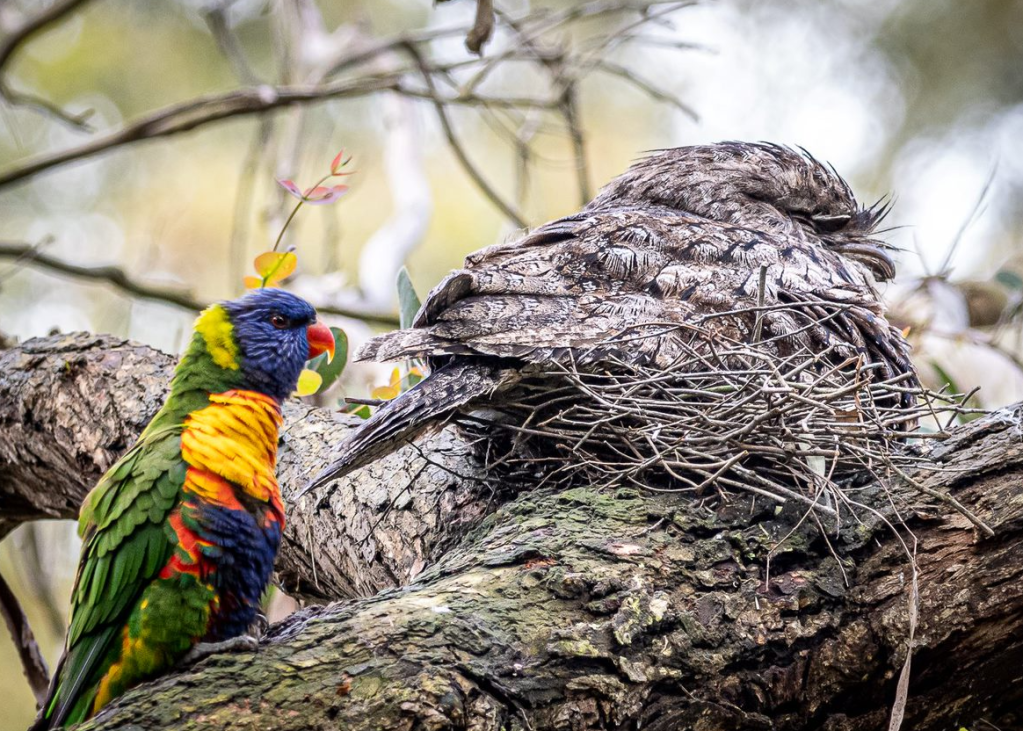Some wags have suggested that the avian parents need to take a Remedial Nest Building 101 course. Tawny Frogmouth nests don’t seem to be the most robust of structures – but, to be fair, this year’s windy and wet conditions have been extreme. Furthermore, we need to question whether there are enough suitable trees in the Creeklands for Tawny Frogmouth nest building – given there are several pairs in the park. We think we need to hedge our bets and plant more trees. All we have to do then is to wait 50 years for the trees to mature enough to provide the sought-after habitat!