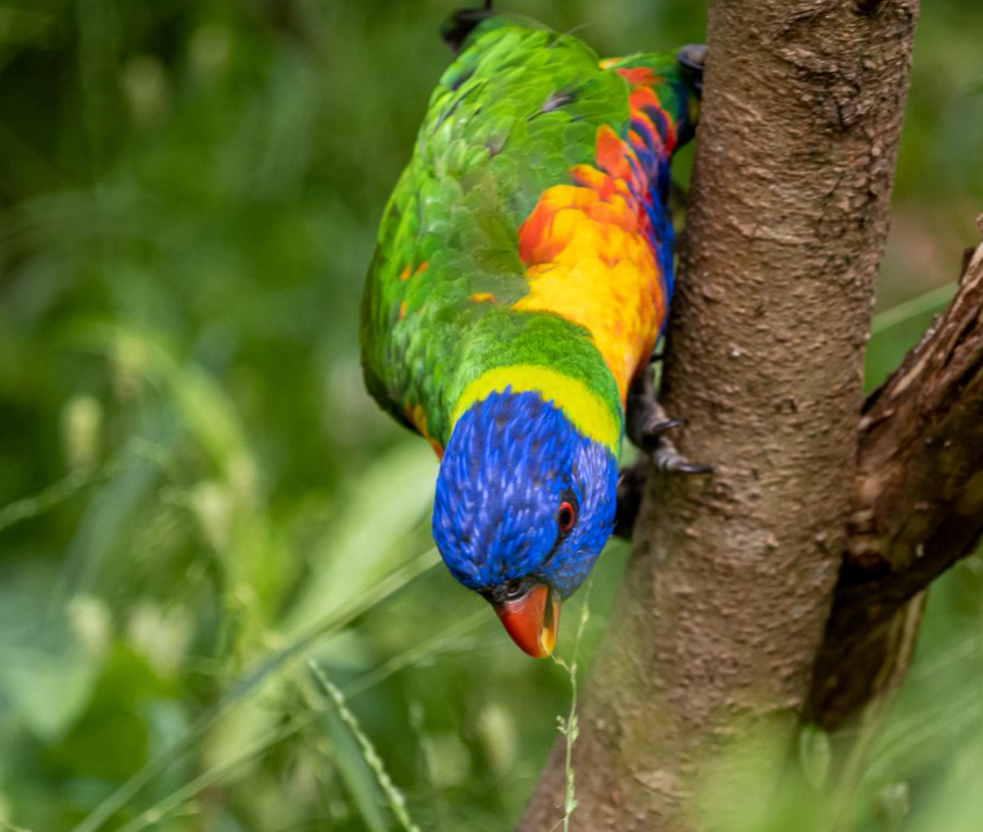 Here are some interesting photos in the Light Box that Ken sent us – including nesting activity and some amusing shots of acrobatic grass seed feeding, Lorikeet photo-bombing and Tawny Frogmouth chicks trying to out-stare the camera’s eye:
