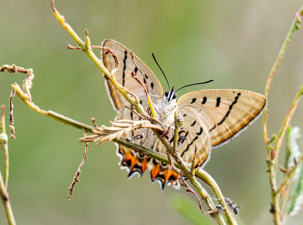 These beautiful butterflies have a unique association with ants. The female butterflies lay their eggs on wattle trees – but only trees that have the scent of the Tyrant Ant. When the caterpillars hatch, they call the ant by clicking hard parts of their bodies. The ants come and protect them – and, as a reward, the caterpillars secrete a sugary substance (“honeydew”) that the ants feed on. The ants stay with the pupae until the butterflies hatch and even the pupa can communicate with the ants.