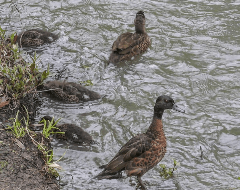 …and to complete our set of the three varieties of duck in the Creeklands, a Chestnut Teal family foraging on one of those grey days: