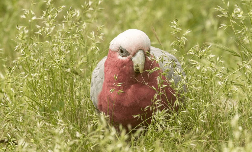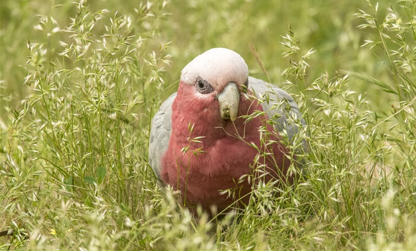 Here’s a Galah having a field day feeding on grass seeds in the “no-mow” area near the children’s playground in Furness Park: