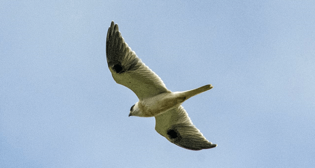 A Black-shouldered Kite (Elanus axillaris) flying over Kalang Oval.