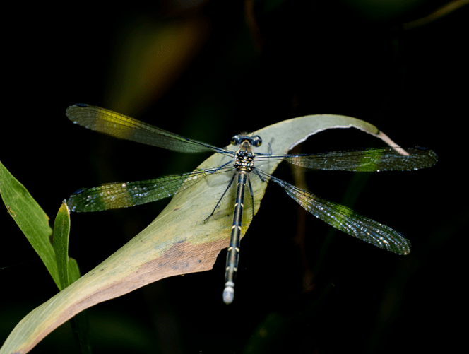 Ken sent us this picture of the Common Flatwing Damselfly (Austroargiolestes icteromelas):